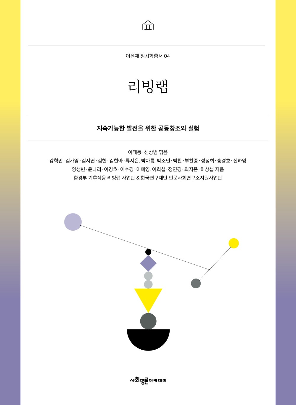 2015년 ‘지속가능한 발전’이 국제적 어젠다로 부상한 이래, 환경-경제-사회의 조화와 미래 세대와 현재 세대 필요의 조화라는 큰 지향점 하에 17개 지속가능한 발전 목표(Sustainable Development Goals: SDGs)가 국제-국가-도시-커뮤니티 등 다양한 층위에서 다채로운 프로그램으로 진행되고 있다. 2030년 SDGs를 달성하기 위해 달려나가는 지금, 이 책은 지속가능성 발전을 위한 방안으로 ‘리빙랩’을 제안한다. 지금까지 리빙랩은 ‘사용자 주도의 혁신’으로 정의되어 왔다. 이를 이 책에서는 ‘실생활에서 사용자들이 공동창조(Co-creation: living)한 문제해결방안을 실험(experiment: lab)을 통해 검증하는 방법’으로 새롭게 정의하고자 한다. 지역의 맥락과 다양한 이해관계자의 경험을 중심에 두는 리빙랩은 지속가능성 과제를 현실적 수준에서 다루도록 돕는다. 무엇보다 정책·기술·교육을 잇는 통합적 접근이 가능해, 복잡한 문제를 다층적으로 해석하고 해결하는 데 강력한 도구가 될 수 있다.