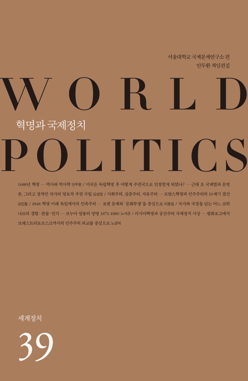이번 호 <세계정치>는 1688년 영국 명예혁명에서 1917년 러시아 볼셰비키 혁명에 이르기까지 근현대 세계사의 방향을 설정한 주요한 혁명을 국제정치 맥락에서 새롭게 살펴보는 한편, 하버드 대학교와 런던정치경제대학교의 역사사회학 연구자를 중심으로 면면히 이어져온 혁명과 국제정치의 변증법을 파악하고자 한 그간의 노력을 처음으로 정리, 소개한다.